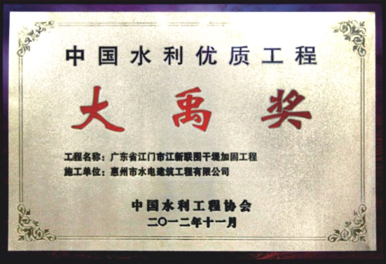 中國水利工程優(yōu)質(zhì)(大禹)獎——廣東省江門市江新聯(lián)圍干堤加固工程
