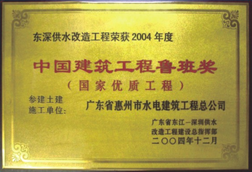 中國建設(shè)工程魯班獎(國家優(yōu)質(zhì)工程)——東深供水改造工程