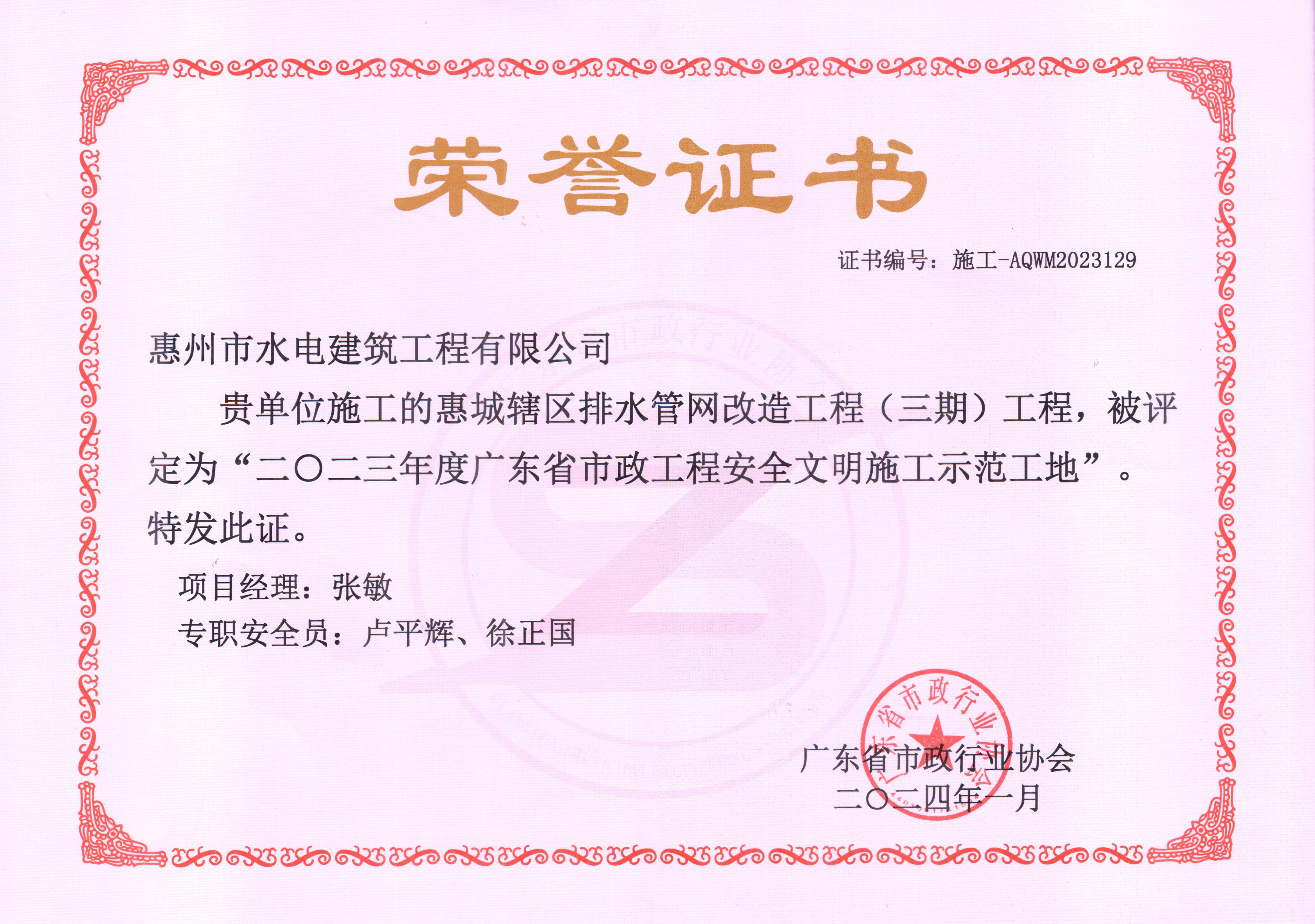 廣東省市政工程安全文明施工示范工地——惠城轄區(qū)排水管網(wǎng)改造工程三期
