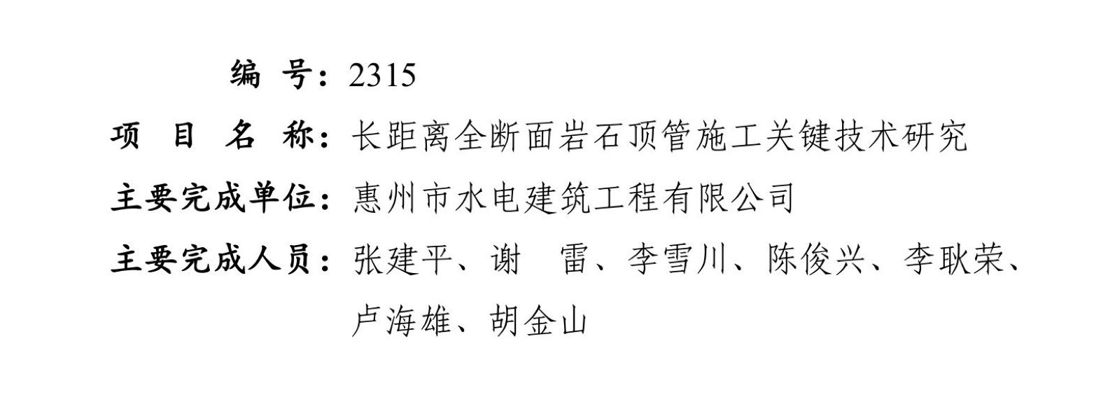 9月14日,廣東省水利學(xué)會水利科學(xué)技術(shù)獎勵委員會公布了《關(guān)于授予第十五屆廣東省水利學(xué)會水利科學(xué)技術(shù)獎的決定》,由市水電公司獨(dú)立完成的《長距離全斷面巖石頂管施工關(guān)鍵技術(shù)研究》獲得三等獎。 廣東省水利學(xué)會水利科學(xué)技術(shù)獎是廣東省水利學(xué)會為獎勵在水利科技創(chuàng)新活動中作出…......