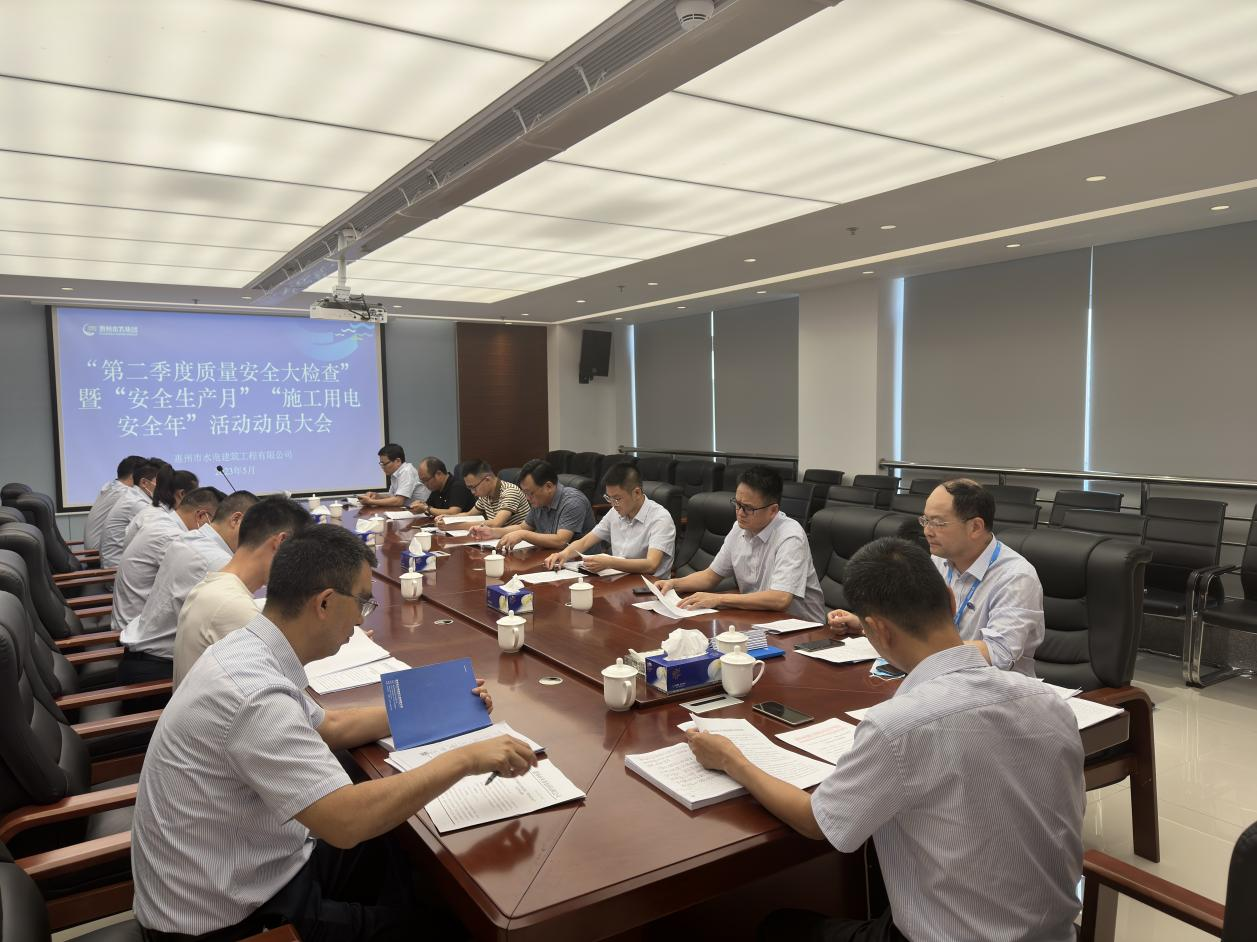 為進(jìn)一步營(yíng)造企業(yè)安全生產(chǎn)文化氛圍,創(chuàng)建“人人講安全、個(gè)個(gè)會(huì)應(yīng)急”的和諧企業(yè),預(yù)防各類生產(chǎn)安全事故的發(fā)生,根據(jù)公司部署要求,安委會(huì)于5月15日下午召開(kāi)第二季度質(zhì)量安全大檢查暨“安全生產(chǎn)月”“施工用電安全年”動(dòng)員大會(huì),會(huì)議由分管安全生產(chǎn)的副總經(jīng)理陳占瑞主持,“安全…......