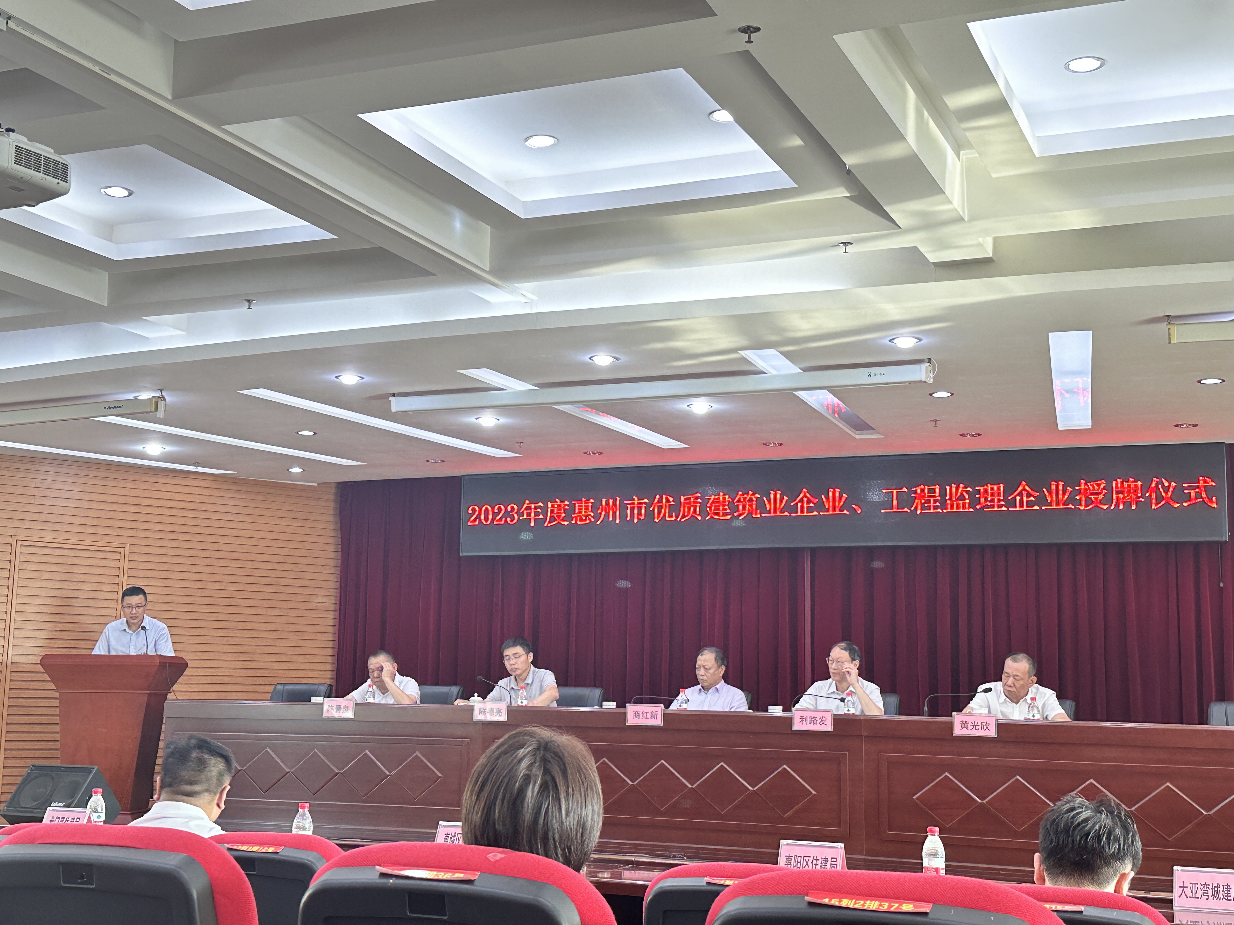 5月14日,惠州市住房和城鄉(xiāng)建設(shè)局舉行2023年度惠州市優(yōu)質(zhì)建筑業(yè)企業(yè)授牌儀式,公司繼2021、2022年度后,再次獲評(píng)為2023年度“優(yōu)質(zhì)建筑業(yè)企業(yè)”。