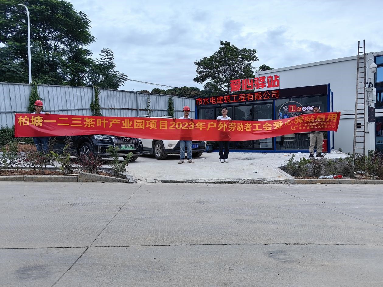 2023年10月,公司積極響應號召,發(fā)揮國有企業(yè)先鋒模范作用,在我司承建項目博羅縣柏塘鎮(zhèn)一二三茶葉產業(yè)園建設愛心驛站。在公司領導的指導下,項目團隊迅速組織愛心驛站的建設工作,經過近一周的緊張籌備與施工,一座集遮陽避雨、休息用餐及媒體閱覽等多功能于一體的星級愛心驛站順利落成并投入使用,此舉得到了上級部門的一致好評。