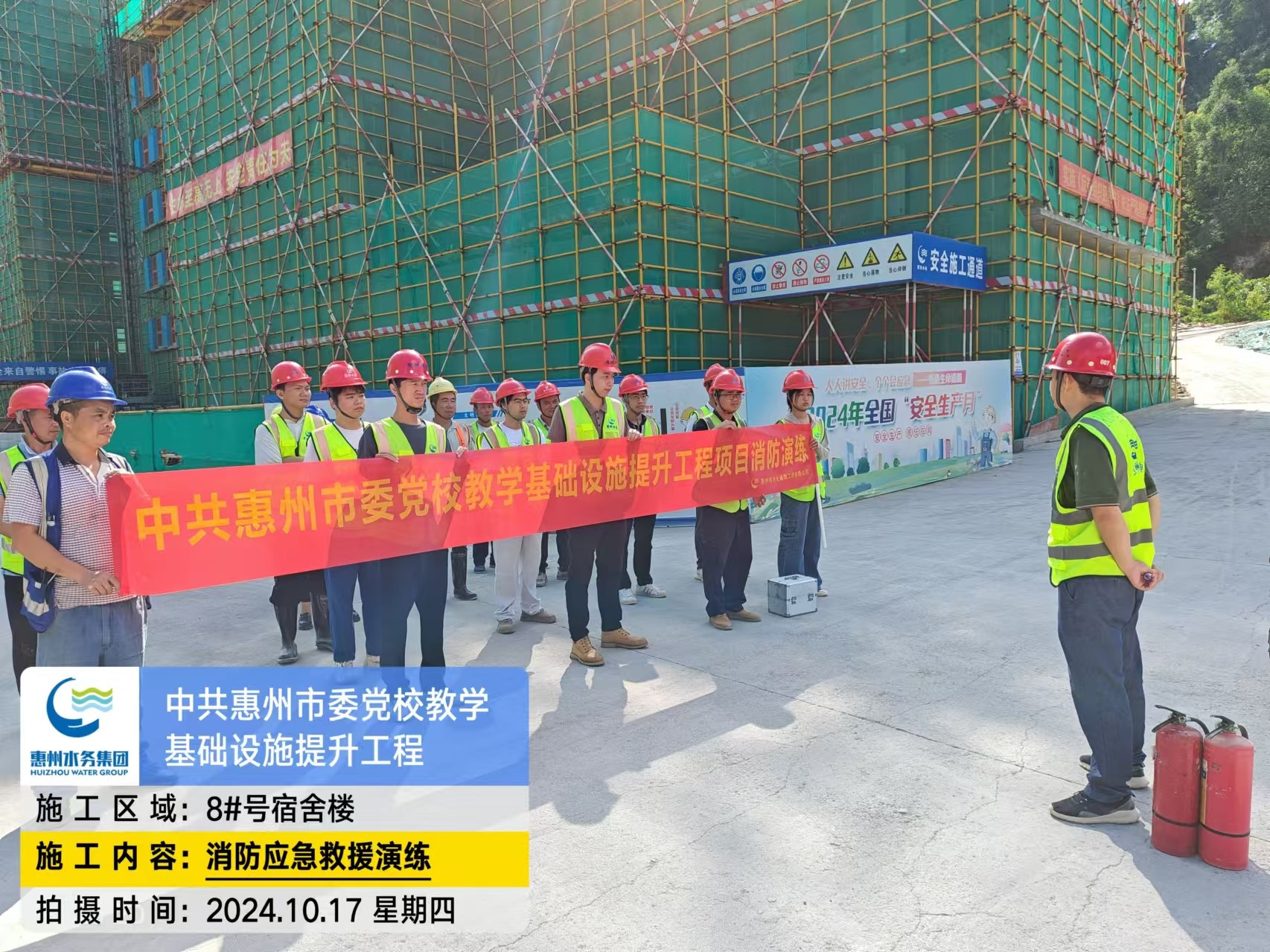 為進一步加強建筑工地消防安全管理,提高項目施工人員的消防安全意識和應急處置能力,10月17日上午,中共惠州市委黨校教學基礎設施提升工程項目部聯(lián)合監(jiān)理單位組織開展消防應急演練。本次演練采取無通知、無腳本、無場景、無地點的形式,旨在檢驗項目部應對突發(fā)事件的應急救援能力。