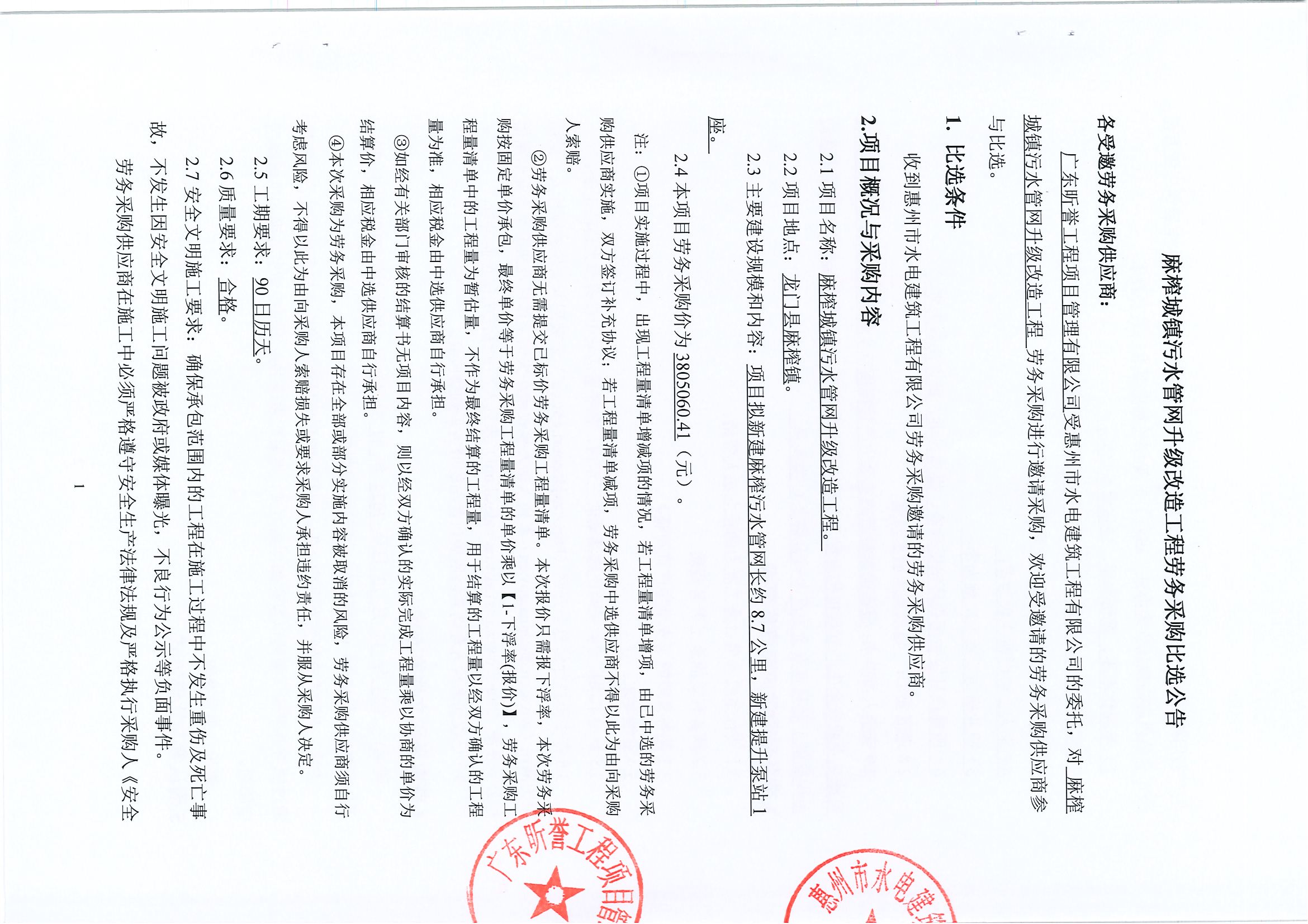 麻榨城鎮(zhèn)污水管網(wǎng)升級(jí)改造工程勞務(wù)采購(gòu)比選公告