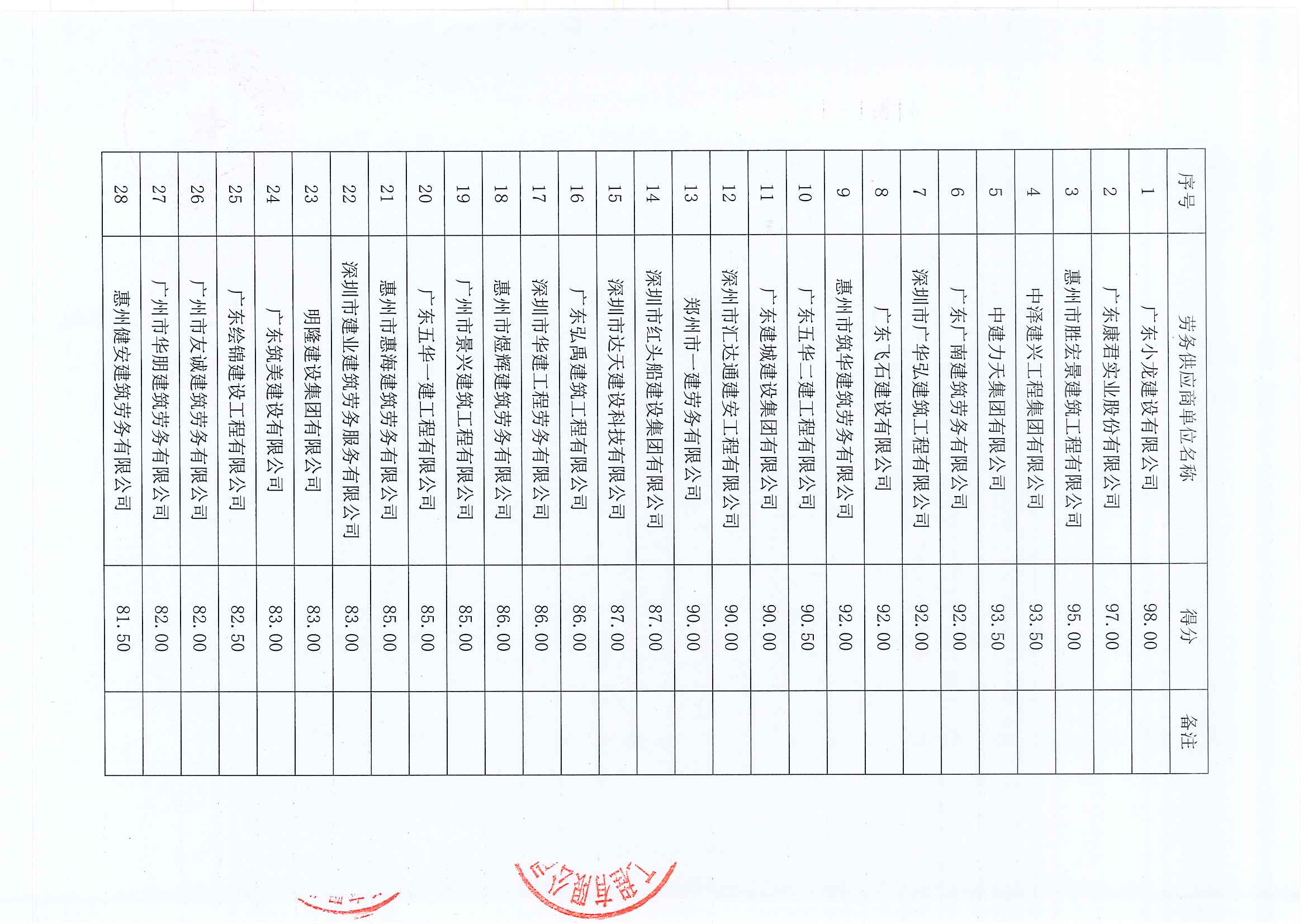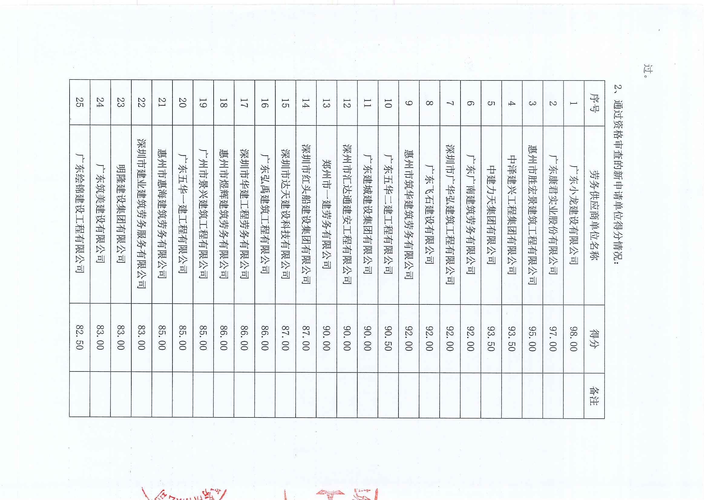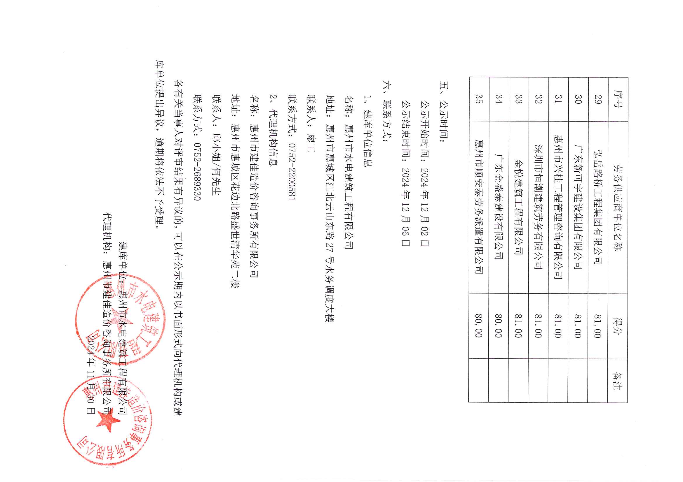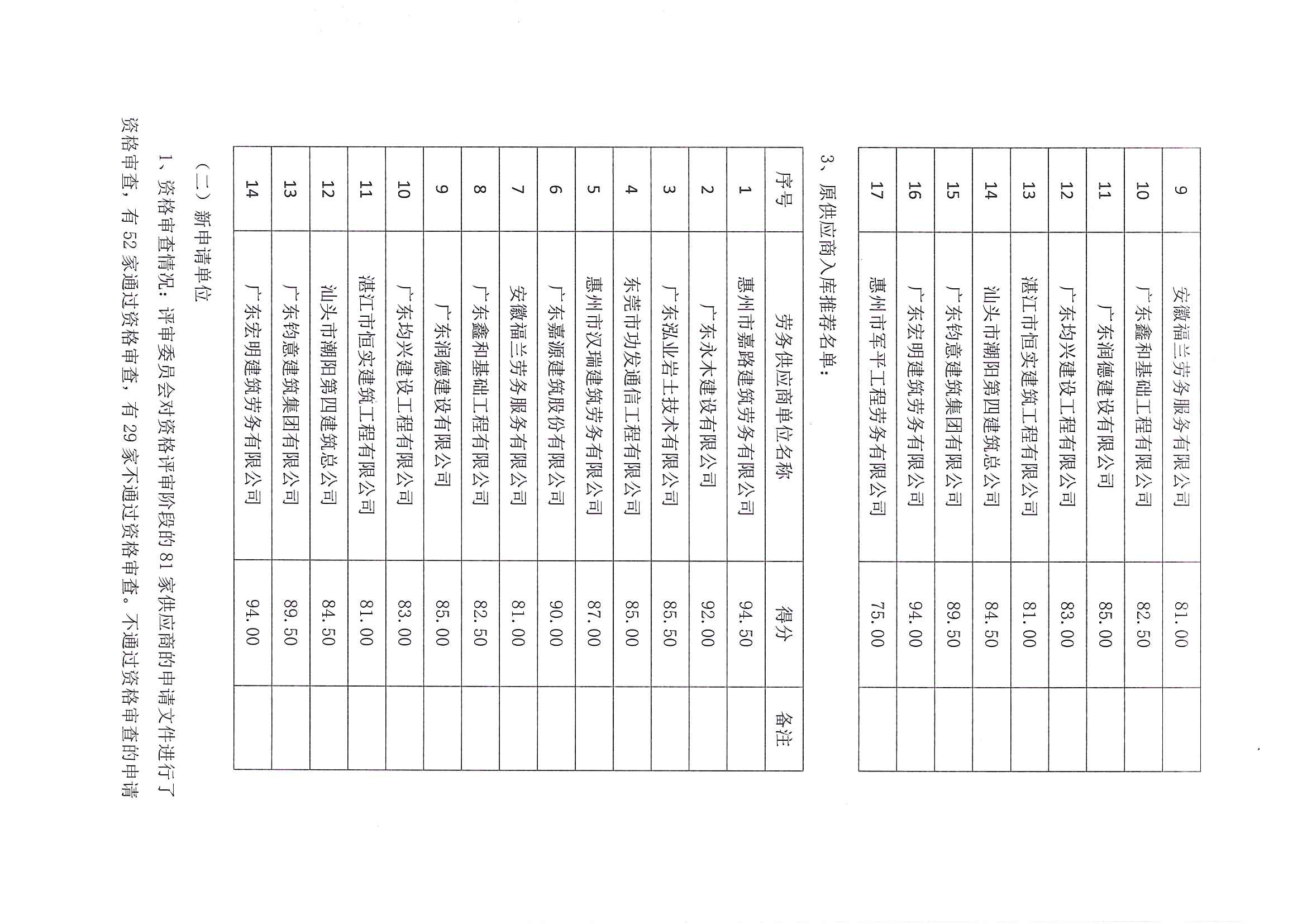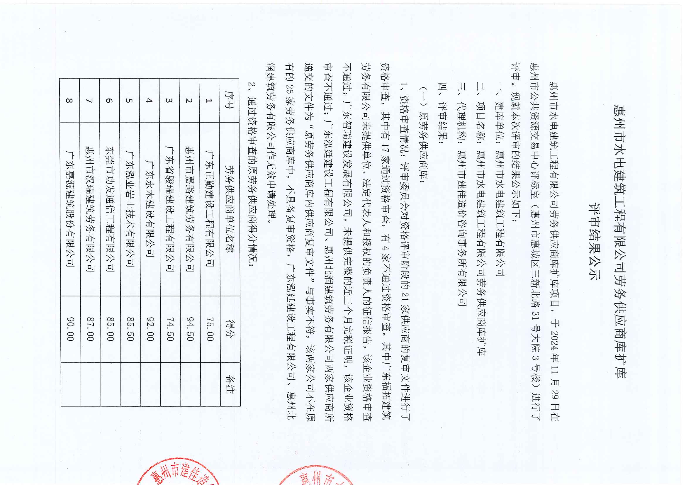 惠州市水電建筑工程有限公司勞務供應商庫擴庫評審結果公示