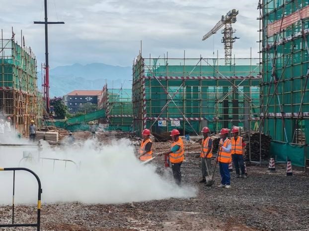 上午9時(shí),公司黨委副書記、總經(jīng)理邢路宣布演練正式開始。本次演練精心設(shè)計(jì)了施工現(xiàn)場綜合辦公樓及鋼筋加工區(qū)電氣短路引發(fā)火災(zāi)的模擬場景,系統(tǒng)演練了火災(zāi)報(bào)警、人員疏散、初期滅火、醫(yī)療救護(hù)等全流程應(yīng)急處置環(huán)節(jié)。演練過程中,各應(yīng)急小組反應(yīng)迅速、配合默契:疏散引導(dǎo)組高效組織作業(yè)人員沿預(yù)定路線有序撤離;滅火行動(dòng)組熟練運(yùn)用滅火器、消防水帶快速控制火勢;醫(yī)療救護(hù)組專業(yè)實(shí)施心肺復(fù)蘇并完成傷員轉(zhuǎn)運(yùn);通信聯(lián)絡(luò)組規(guī)范對(duì)接外部救援力量。整個(gè)演練過程組織嚴(yán)密、處置得當(dāng),充分展現(xiàn)了參演人員的應(yīng)急處置能力。