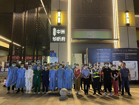 8月17日,公司黨委在接到上級通知后第一時間發(fā)出動員令,號召所屬各級黨組織和廣大黨員干部要克服困難,在疫情防控阻擊戰(zhàn)中走在前、做表率,發(fā)揮黨員干部先鋒模范作用,緊急組織選派了15名綜合素質(zhì)好、宗旨意識強的黨員干部組成黨員突擊隊,下沉一線,支援江北街道疫情防控工作。當日傍晚,突擊隊黨員干部迅速行動,立即分赴宏益公館及中洲華昕府兩處疫情防控工作地點支援街道社區(qū),配合做好各項工作。檢測點,他們嚴格做好秩序維持;采樣前,他們細心錄入人員信息;出入口,他們耐心勸導分流居民群眾。