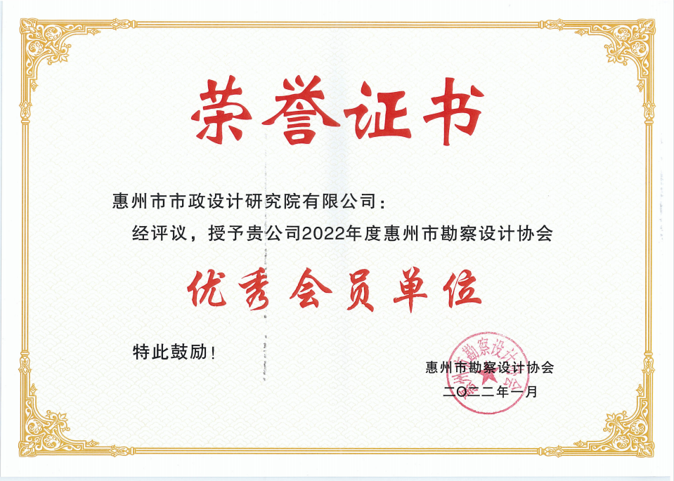 惠州市市政設計研究院有限公司主要承接給水排水、城市道路、橋隧工程等市政工程設計,兼營工程勘察、工程測繪相關業(yè)務。自1994年成立以來,公司秉持“精心設計、誠信服務”的方針,積極承擔社會責任,做到守法誠信經(jīng)營。今年是公司連續(xù)榮獲“優(yōu)秀會員單位”稱號的第3年,市政設計院將以此榮譽為激勵,繼續(xù)加強工程項目的勘察設計和質(zhì)量管理工作,為惠州高質(zhì)量發(fā)展作出貢獻。(通訊員:翟嘉莉)