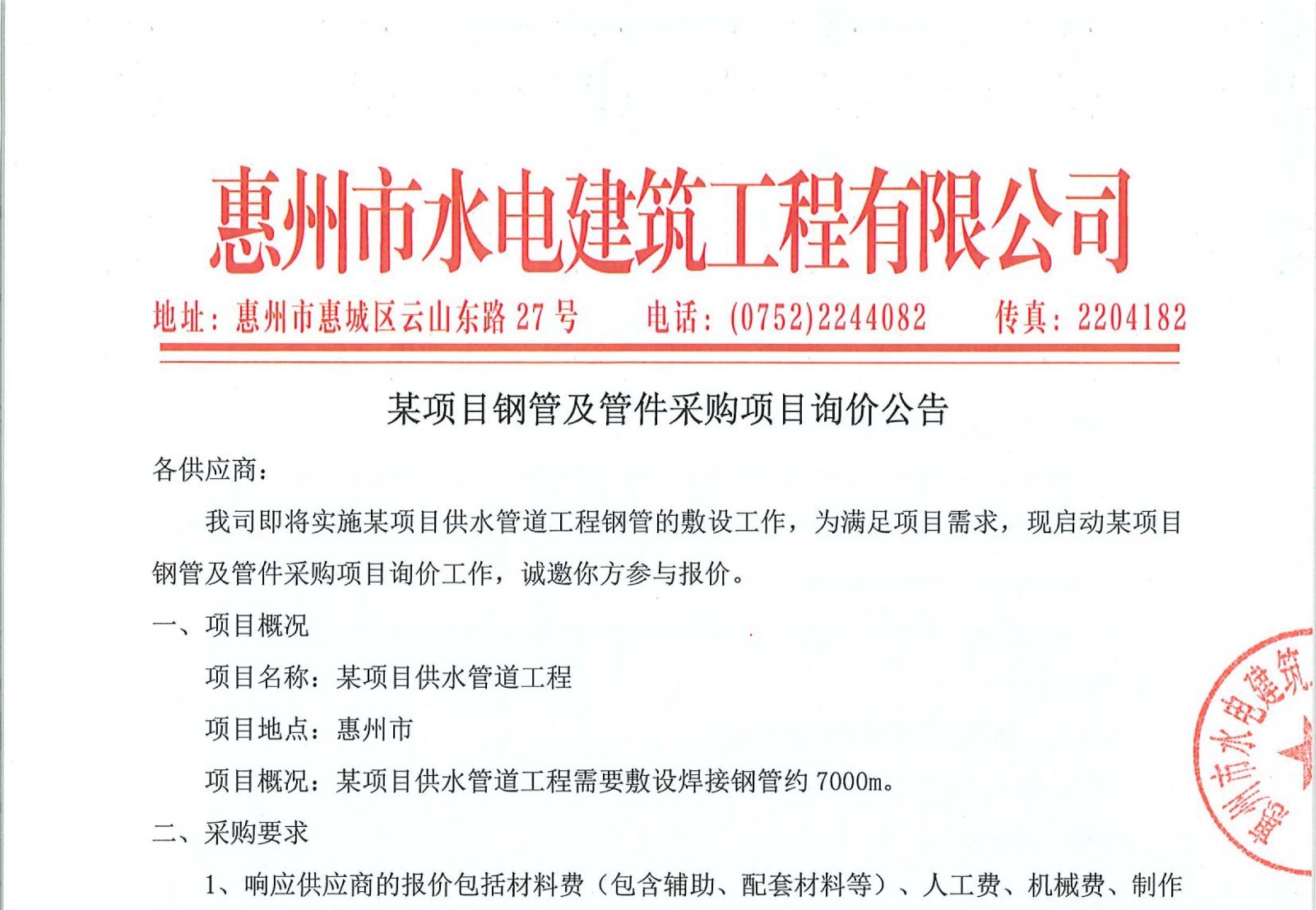 附件:某項(xiàng)目鋼管及管件采購(gòu)項(xiàng)目詢價(jià)報(bào)價(jià)表......