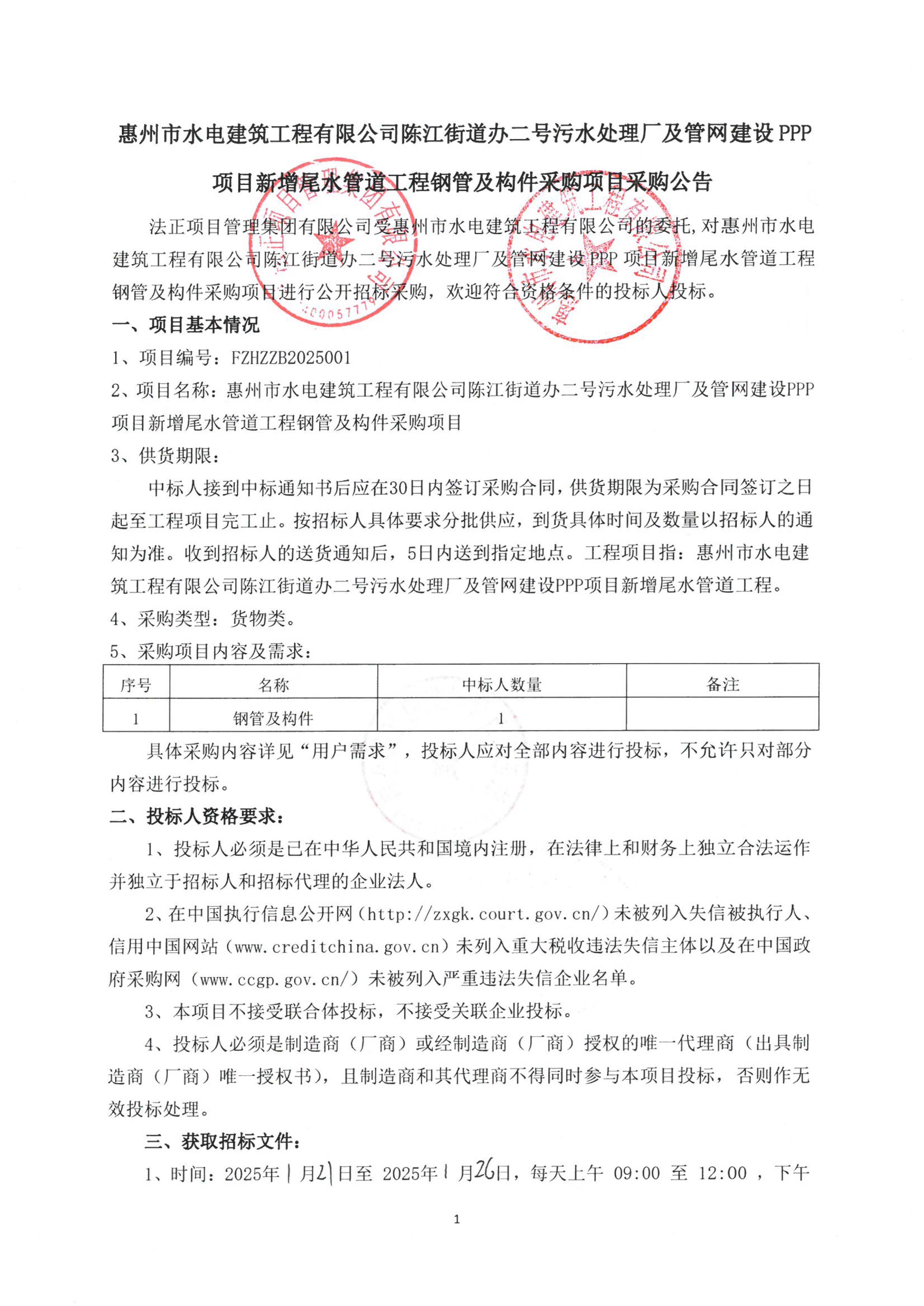 陳江街道辦二號污水處理廠及管網(wǎng)建設(shè)PPP項目新增尾水管道工程鋼管及構(gòu)件采購項目采購公告
