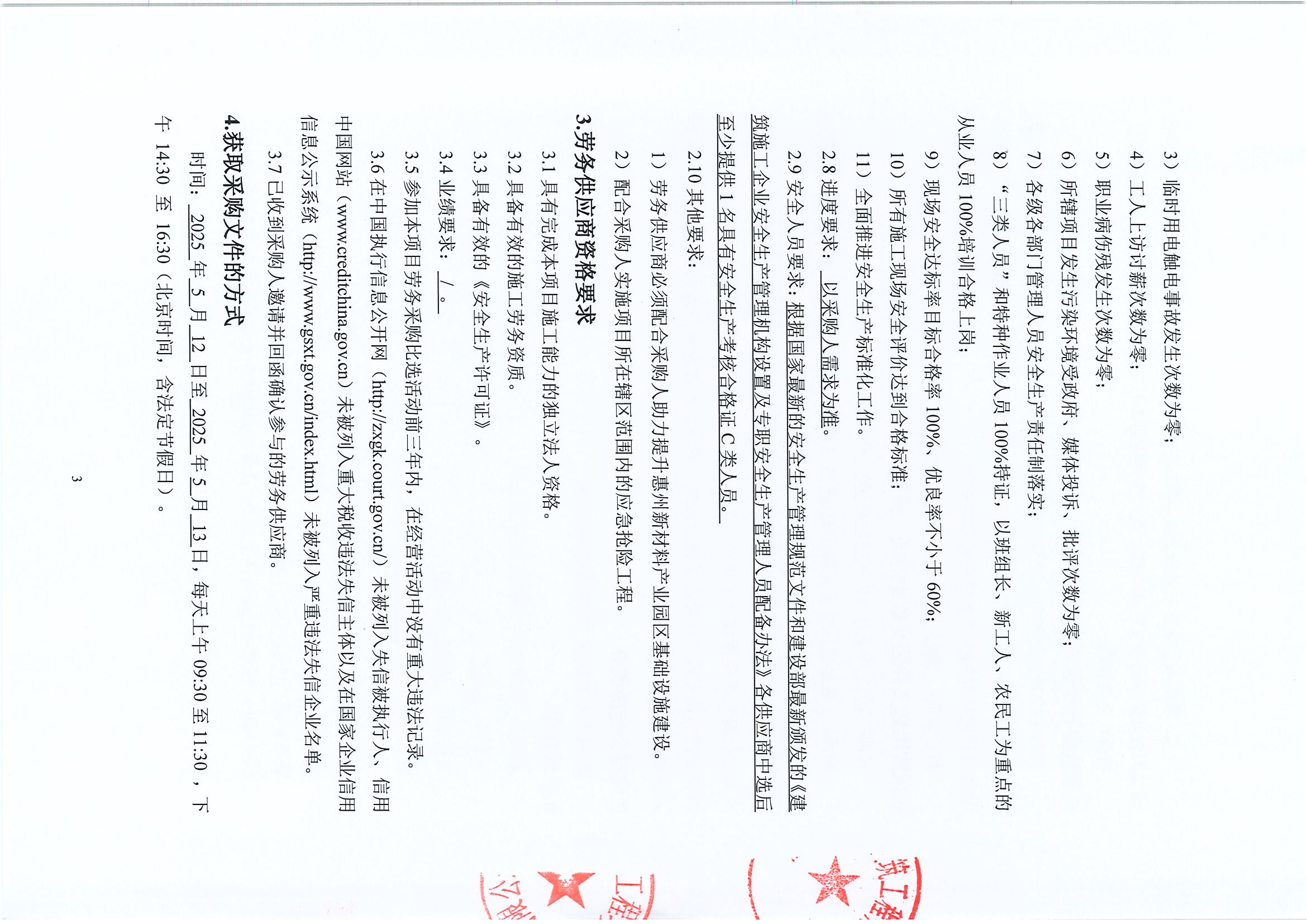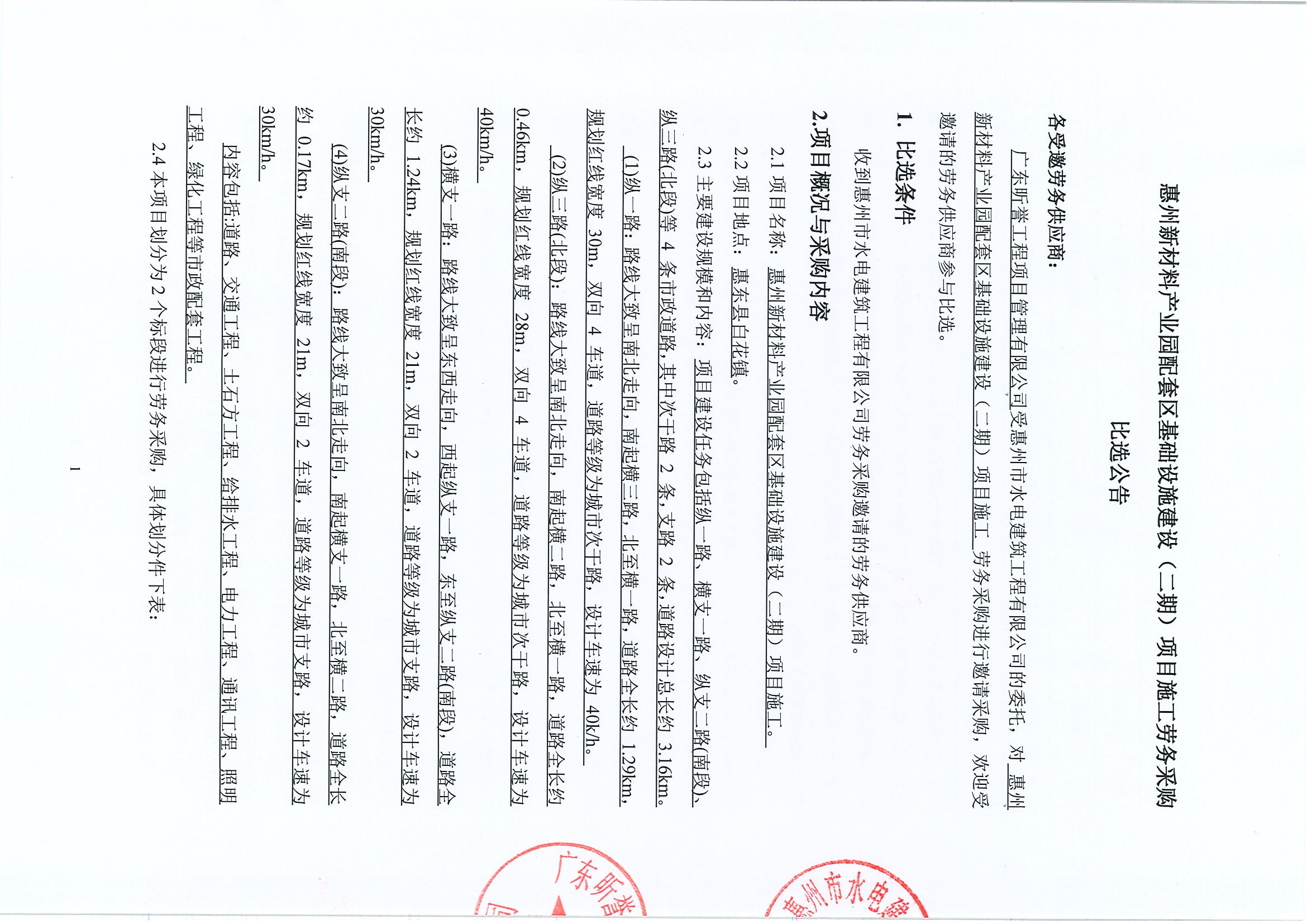 惠州新材料產(chǎn)業(yè)園配套區(qū)基礎(chǔ)設(shè)施建設(shè)(二期)項(xiàng)目施工勞務(wù)采購(gòu)比選公告