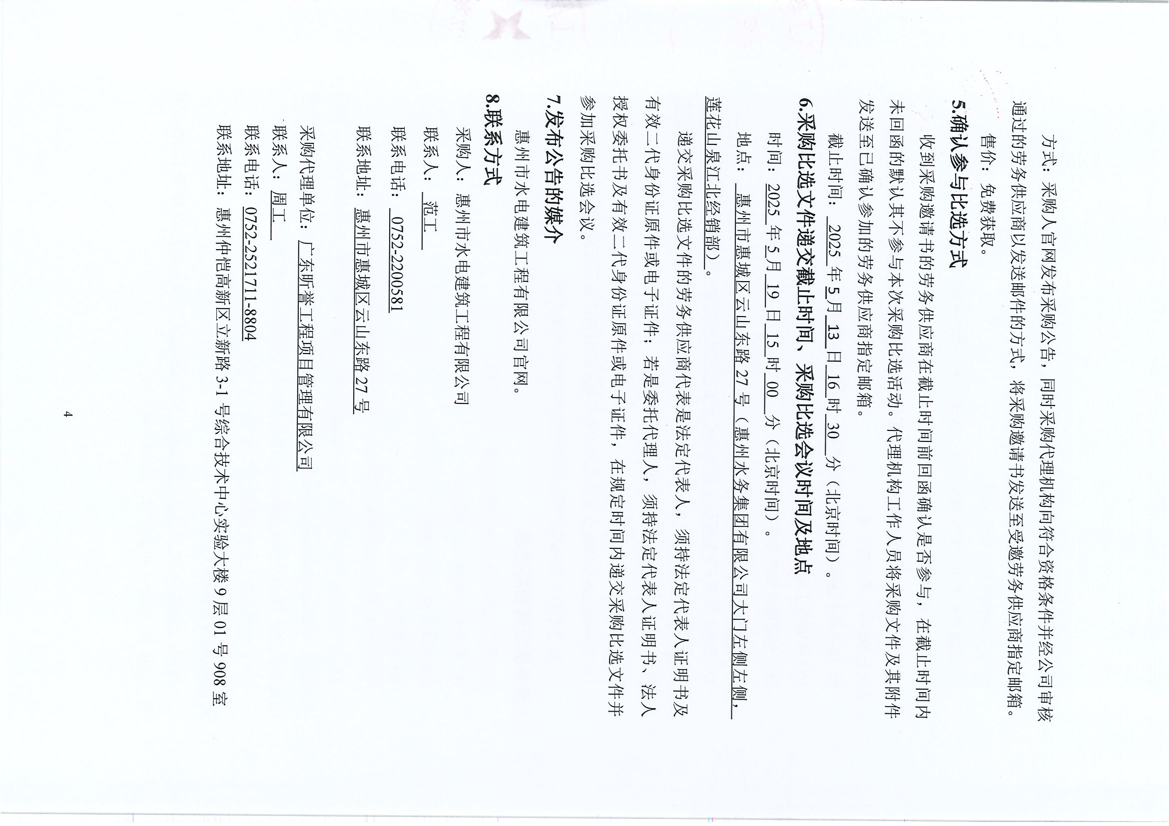 廣東省惠州市中心城區(qū)防洪排澇綜合治理工程橫瀝鎮(zhèn)矮陂片區(qū)排洪渠整治項(xiàng)目勞務(wù)采購(gòu)中選候選人公示