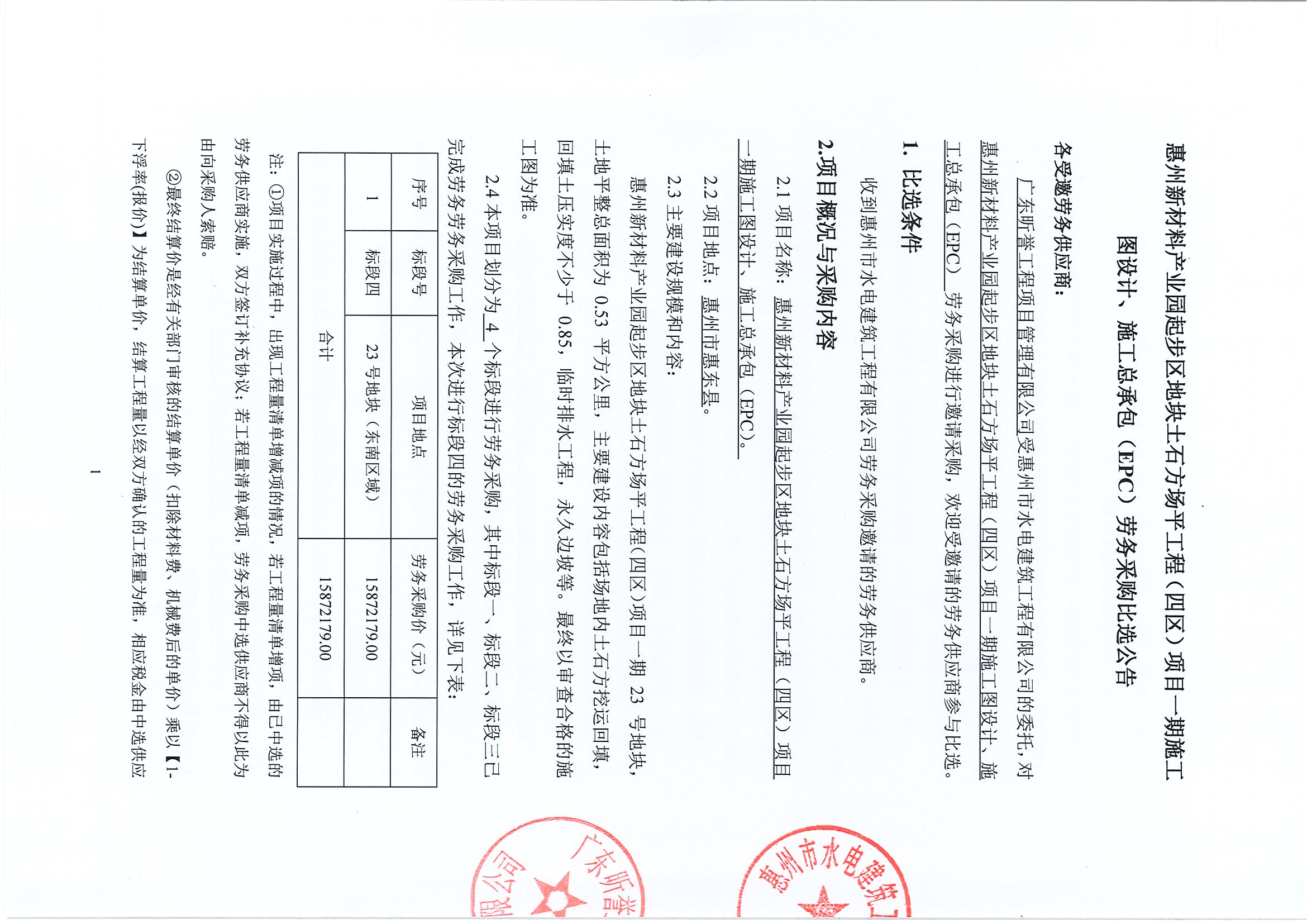 惠州新材料產(chǎn)業(yè)園起步區(qū)地塊土石方場(chǎng)平工程(四區(qū))項(xiàng)目一期施工圖設(shè)計(jì)、施工總承包(EPC)勞務(wù)采購(gòu)比選公告