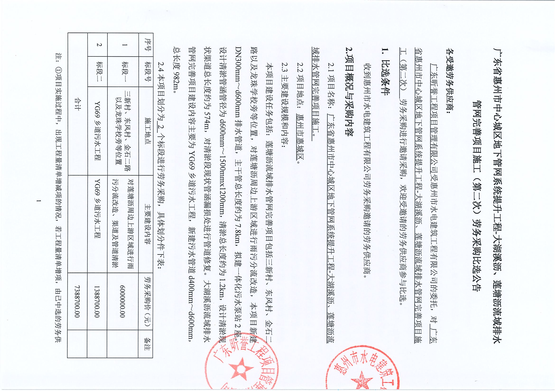 廣東省惠州市中心城區(qū)地下管網(wǎng)系統(tǒng)提升工程-木瀝河流域排水管網(wǎng)完善項目施工(第二次)勞務(wù)采購比選公告