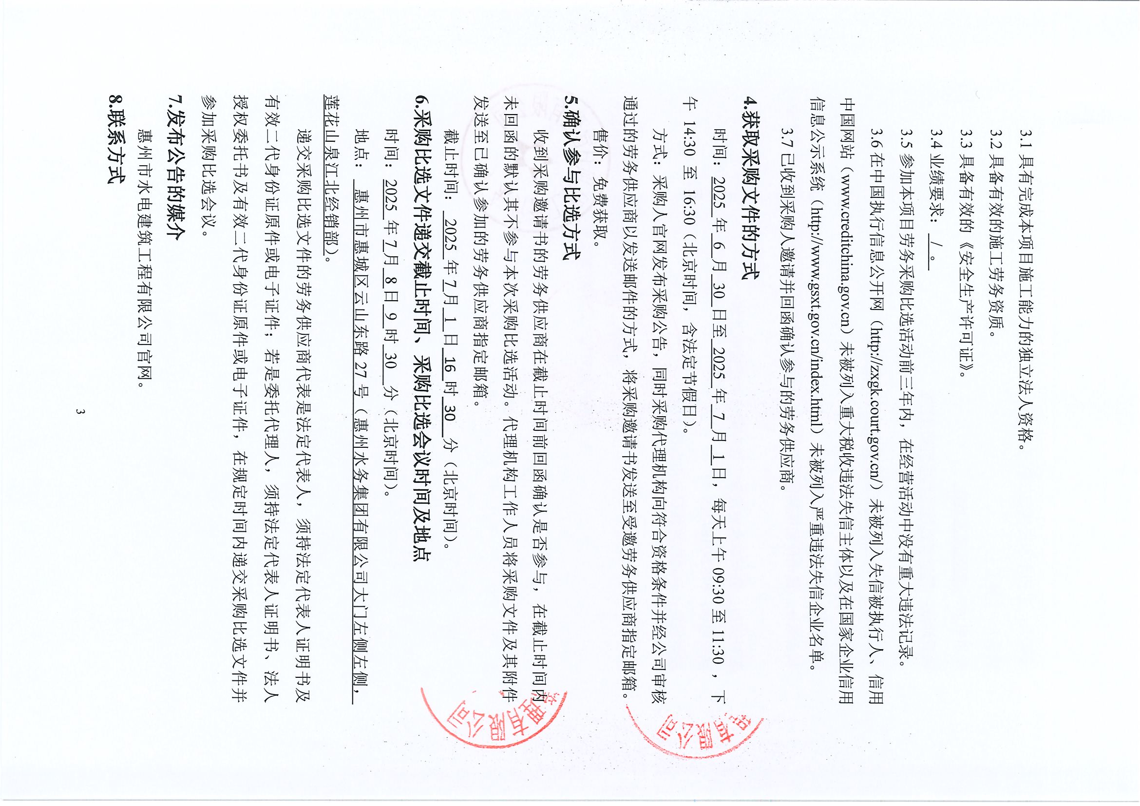 廣東省惠州市中心城區(qū)防洪排澇綜合治理工程(青邊瀝治理(一期)工程)施工勞務(wù)采購比選公告