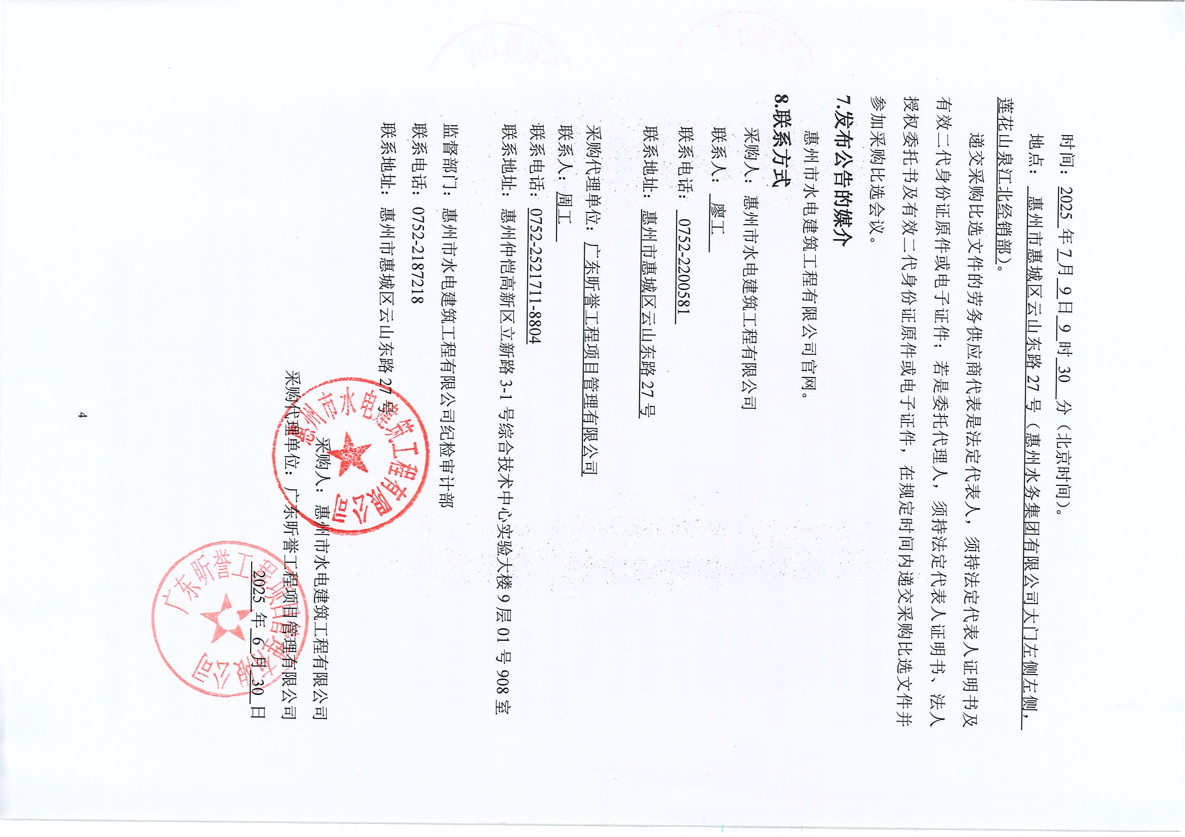 廣東省惠州市中心城區(qū)防洪排澇綜合治理工程(大湖溪水及其支流(一期)工程)施工勞務(wù)采購比選公告