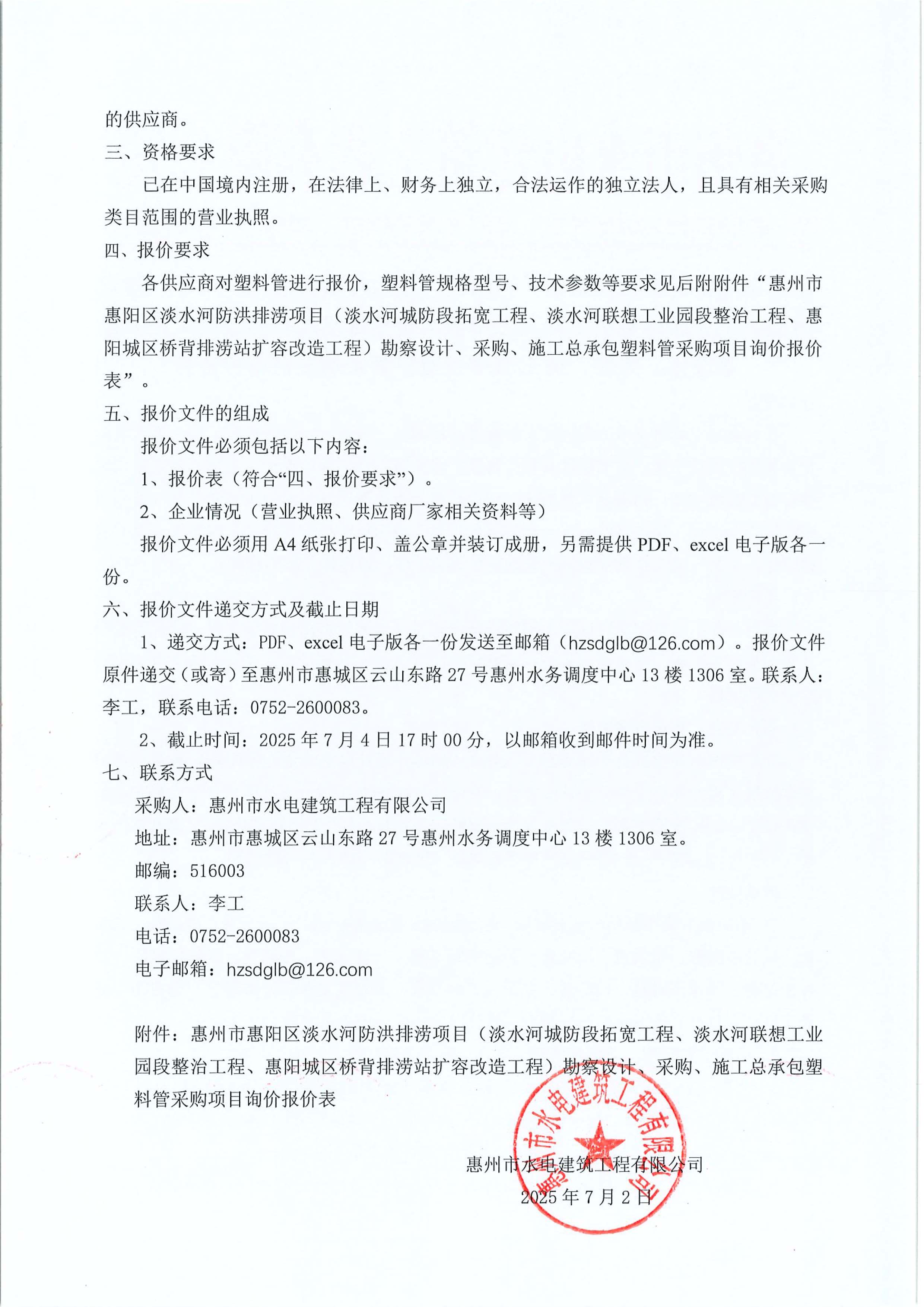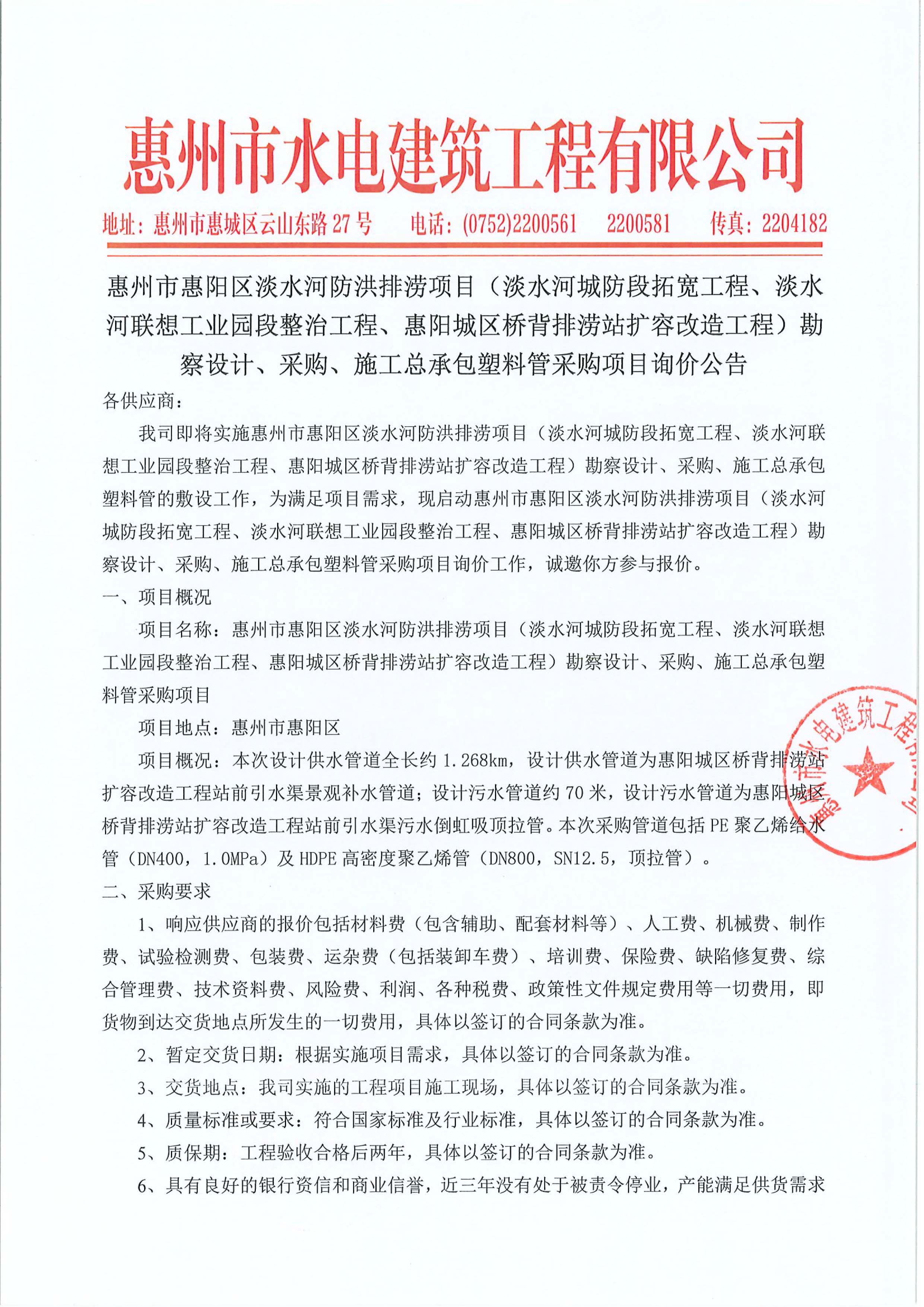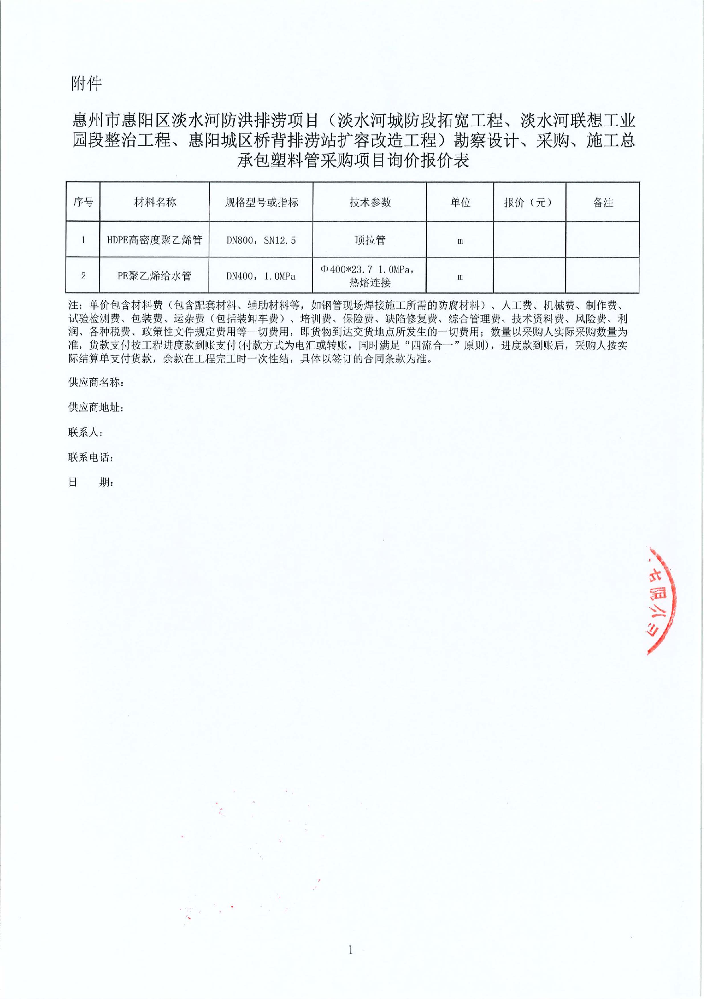 勘察設(shè)計(jì)、采購、施工總承包塑料管采購項(xiàng)目詢價(jià)報(bào)價(jià)表