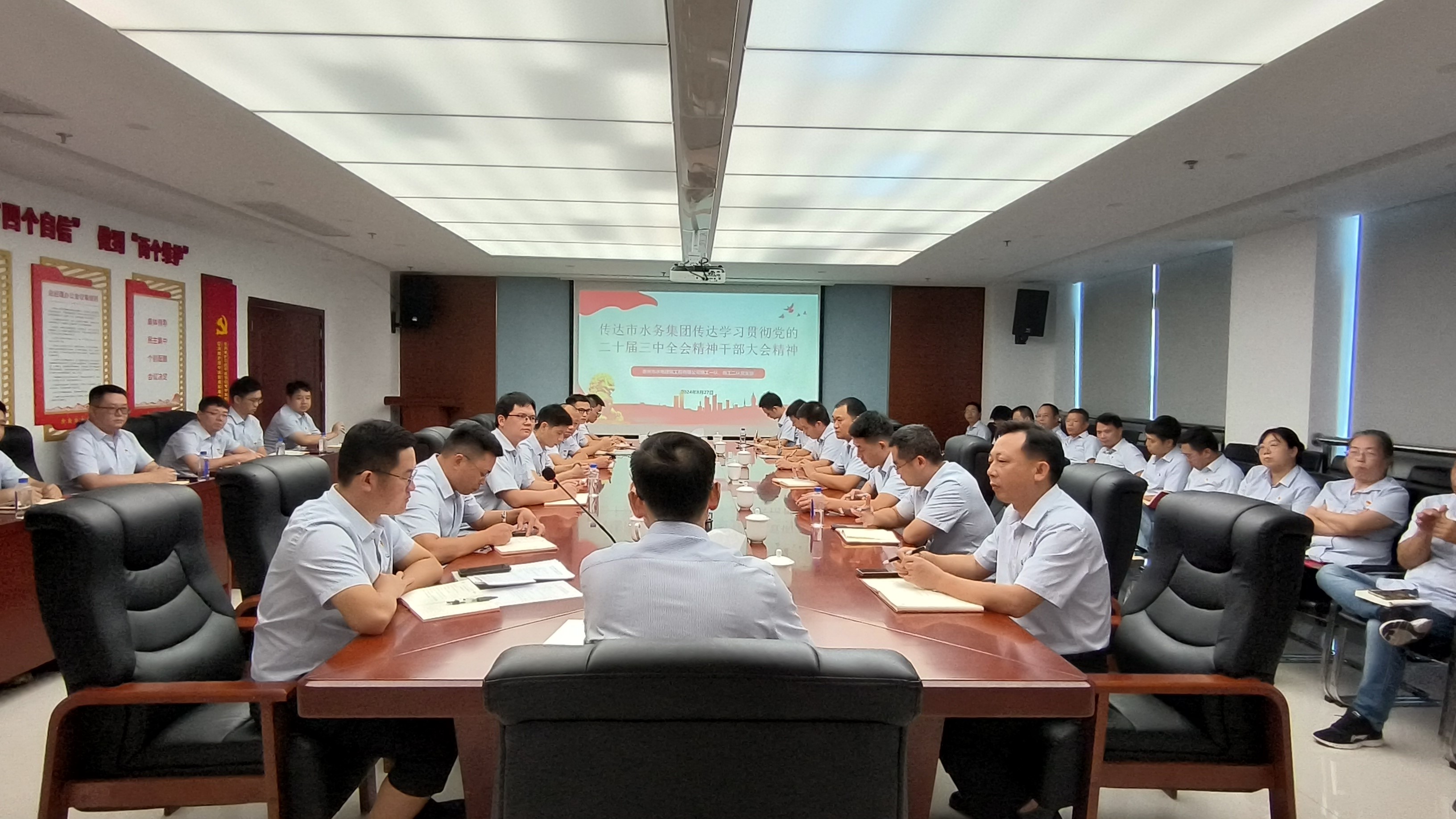 會上,陳耀中書記傳達(dá)了《市水務(wù)集團(tuán)傳達(dá)學(xué)習(xí)貫徹黨的二十屆三中全會精神干部大會精神》,要求從三個必須方面深刻領(lǐng)悟全會精神:一是必須堅定全面深化改革的信心決心,進(jìn)一步激發(fā)干事創(chuàng)業(yè)精氣神;二是必須堅持黨的領(lǐng)導(dǎo)這一根本保證,進(jìn)一步凝聚推進(jìn)改革的強(qiáng)大合力;三是必須立足崗位職責(zé)使命,進(jìn)一步推動企業(yè)高質(zhì)量發(fā)展。陳耀中書記強(qiáng)調(diào),我們要深刻把握黨的二十屆三中全會精神的豐富內(nèi)涵和要求,領(lǐng)悟進(jìn)一步全面深化改革的重大意義,確保全面深化改革沿著正確的方向前進(jìn)。全體職工特別是黨員干部要深刻領(lǐng)會,要深學(xué)細(xì)悟、真抓實干把思想和行動統(tǒng)一到全會精神上來,切實把全會精神落實到企業(yè)改革發(fā)展各方面、全過程。