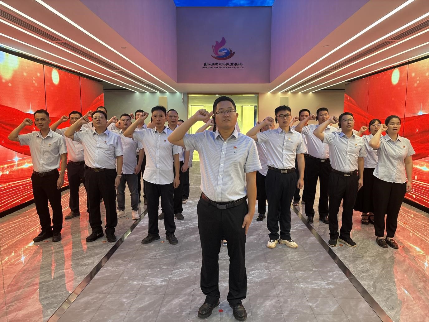 在最后宣誓環(huán)節(jié),全體黨員面對(duì)鮮紅的黨旗,高舉右拳,在施工一隊(duì)支部書記李雪川的帶領(lǐng)下莊嚴(yán)宣誓:“我志愿加入中國(guó)共產(chǎn)黨,擁護(hù)黨的綱領(lǐng),遵守黨的章程……”鏗鏘有力的誓言在展廳內(nèi)回蕩,表達(dá)了黨員們堅(jiān)守廉潔底線、永葆政治本色的堅(jiān)定決心。
