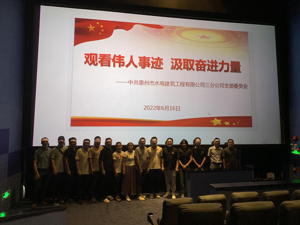 為推動黨史學(xué)習(xí)教育常態(tài)化長效化,利用革命題材電影資源,營造知史愛黨、知史愛國的濃厚氛圍,惠州市水電建筑工程有限公司第三分公司黨支部于2022年6月17日開展“觀看偉人事跡,汲取奮進(jìn)力量”主題黨日活動,組織支部全體黨員、發(fā)展對象和積極分子觀看獻(xiàn)禮建黨100周年重大革命題材電影《鄧小平小道》。