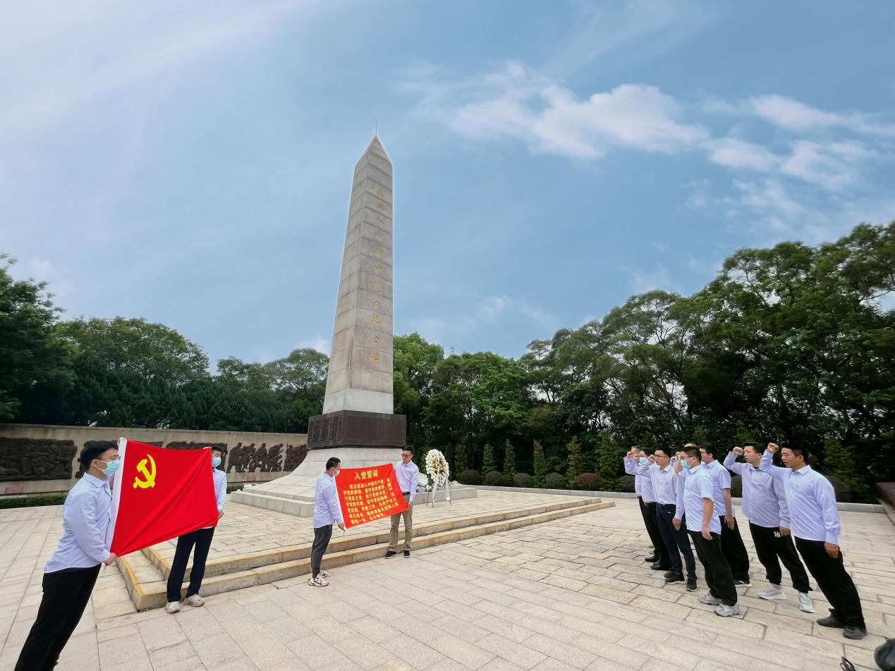 三公司黨支部成員整齊肅立于東江人民革命烈士紀(jì)念碑前,祭奠烈士英靈,緬懷英雄豐功偉績,寄托無限追思。隨后,黨員們在莊嚴(yán)的紀(jì)念碑下重溫入黨誓詞,在王東海書記的領(lǐng)誓下,大家舉起右拳,面對黨旗,莊嚴(yán)宣誓,用鏗鏘的誓言表達(dá)對黨忠誠的決心,堅(jiān)定為共產(chǎn)主義奮斗終身的崇高信仰。